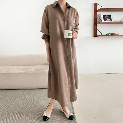 [유야]여성 데일리 무지 카라 셔츠 롱 원피스 -FOP0566- 봄 가을