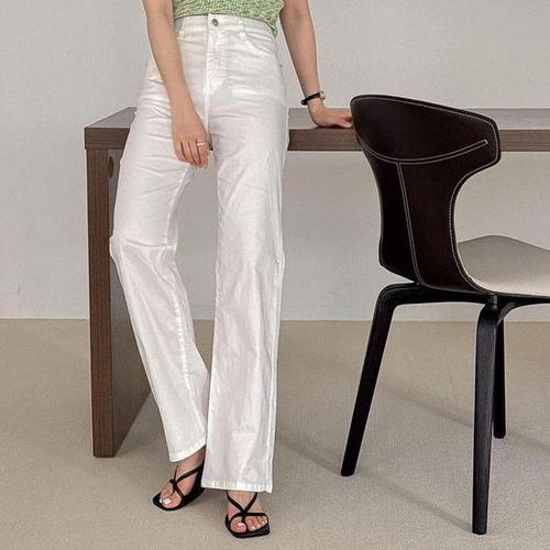 [에이치플러스몰]여자 흰색 청바지 부츠컷 흰청바지 봄패션 데님팬츠