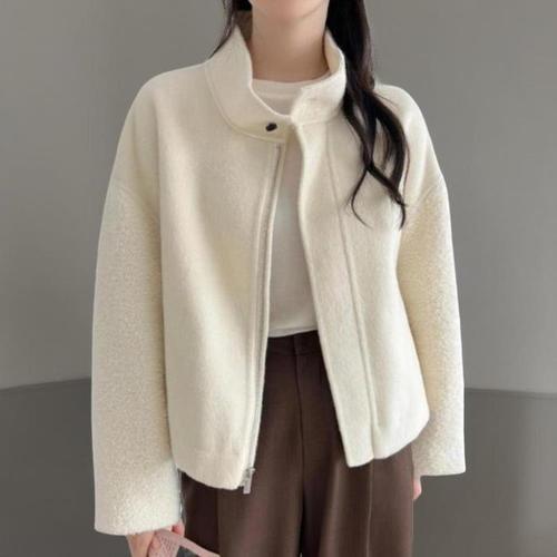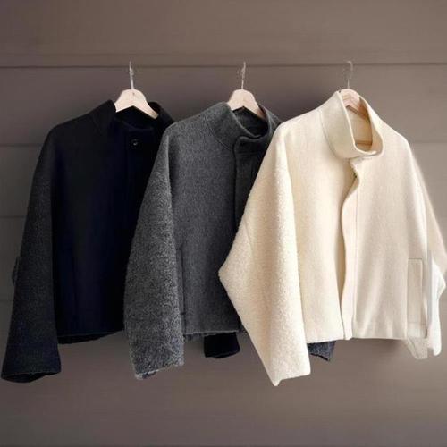 [신상오픈런]여성 단색 울혼합 하이넥 부클 반코트 (41992868)