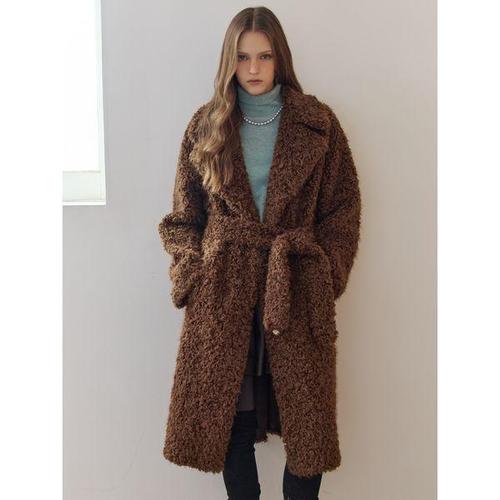 [마쟈]더블 카라 벨티드 부클 롱 코트