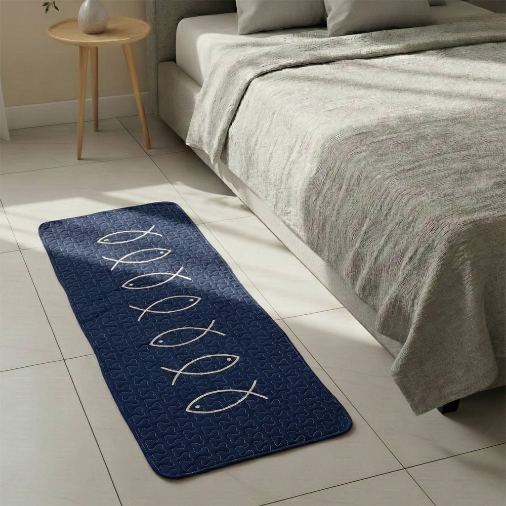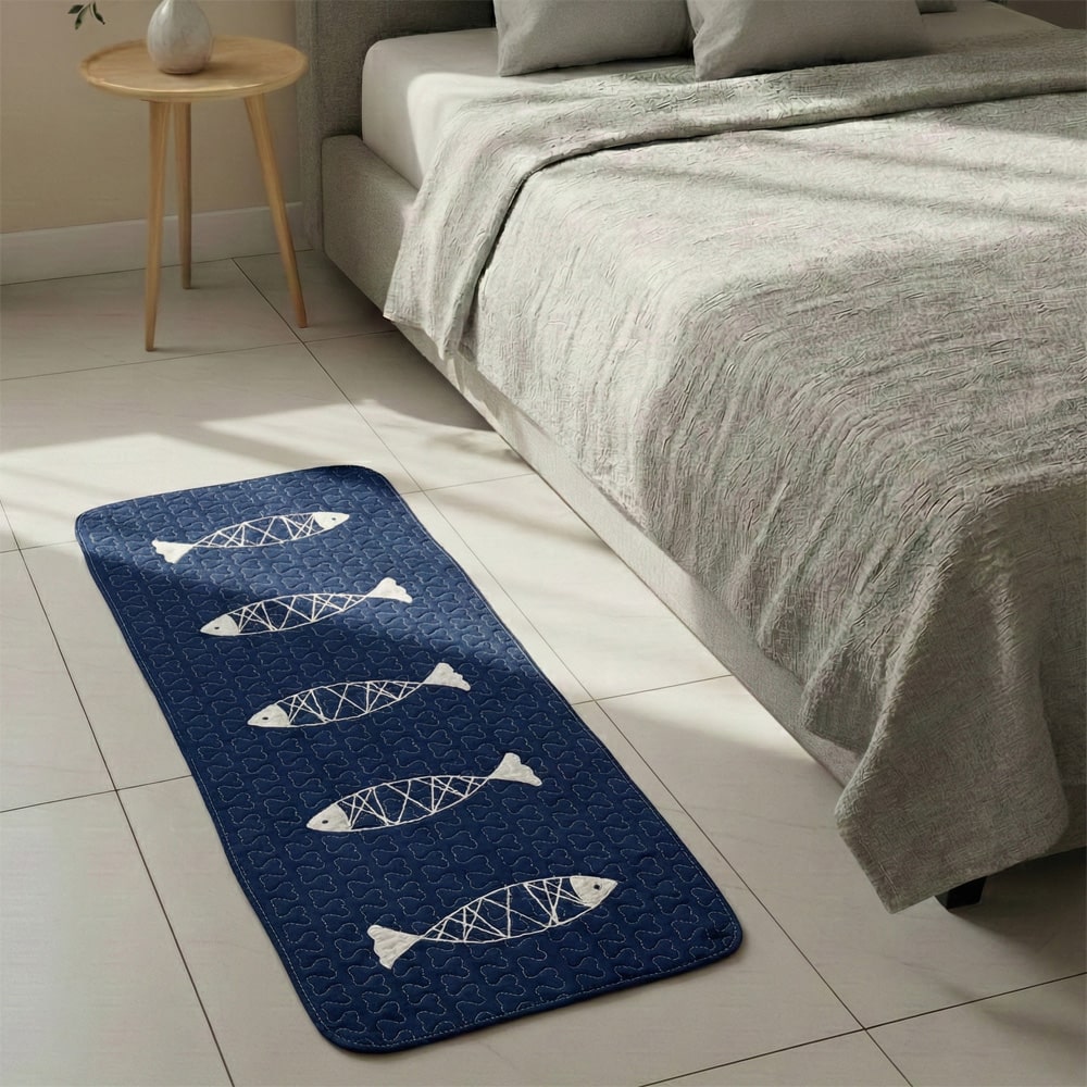 북유럽 모던피쉬 네이비 퀼팅 롱발매트 주방매트 발매트