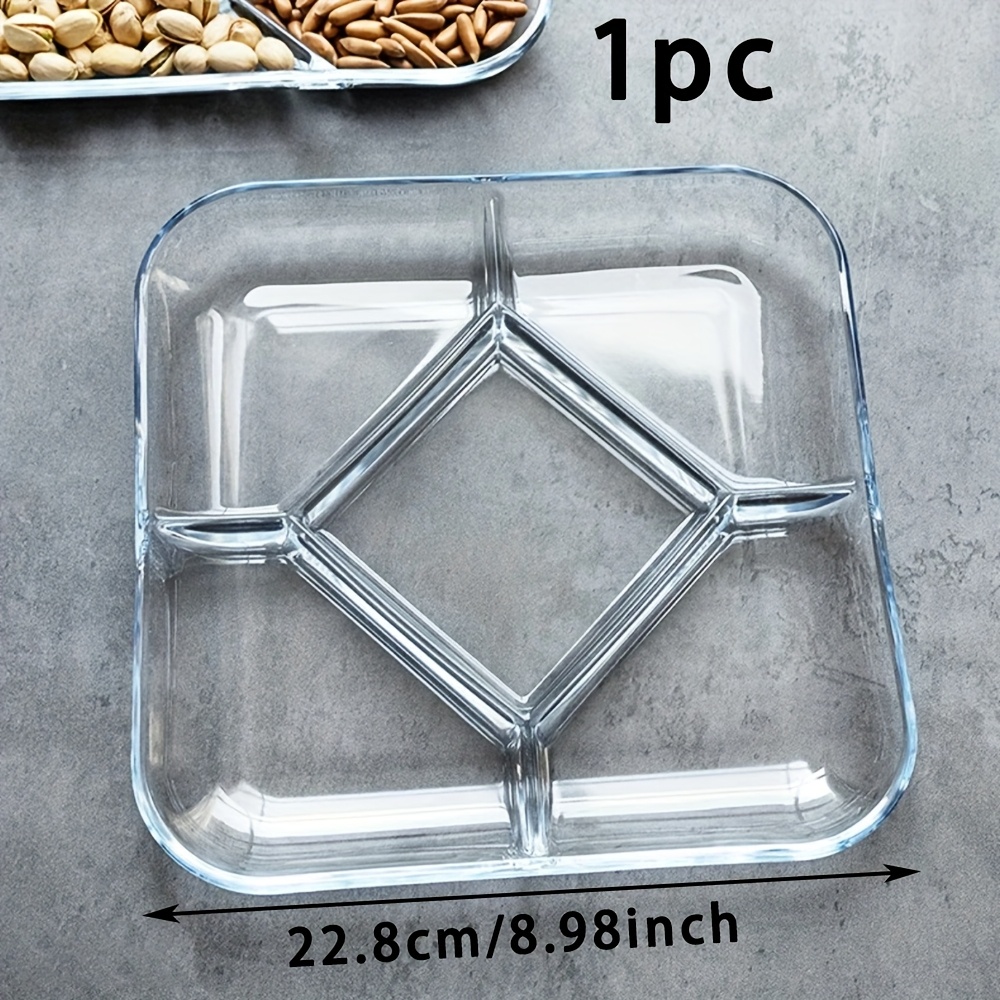 TEMU 1pc 둥근 유리 저녁 접시 - 섹션 32, 포션 제어, 과일 샐러드, 사이드 디시, 식사 분리, 가정용, 샐러드 서비스 플래터 | 현대식 식기 | 내구성 있는 유리 접시