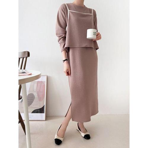 세컨핑크 여성용 레이어드 뷔스티에 울혼방 니트 나시 + 긴팔 세트 502