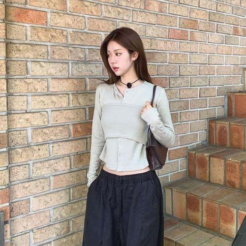 [신상오픈런]여성 힙무드 골지 스판 뷔스티에 레이어드 니트 세트