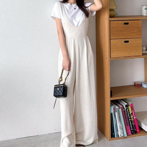 [신상오픈런]베메라 넓은 여성 린넨라이크 점프슈트 여름 비스티에 핀턱