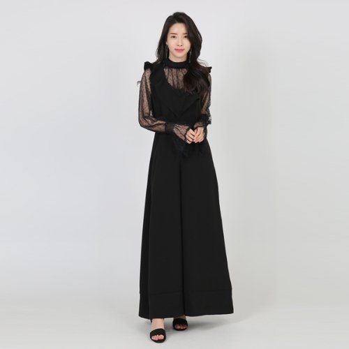 S/S MO008 프릴 뷔스티에 와이드 점프슈트