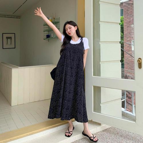 [하늘바라기]땡땡 쿨 도트 점프수트/땡땡이점프수트/뷔스티에점프수트