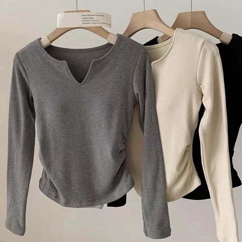 [오너클랜]인기상품 티셔츠 긴팔 상의 셔링 노브라 트임 여성 패드내장 [WFJ8Q28_251031]