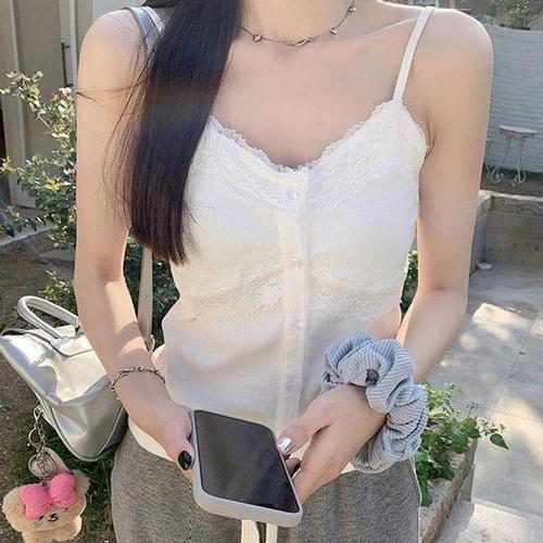 [에이치플러스몰]여성 슬림핏 버튼 레이스 브라캡나시 나시브라 브라렛