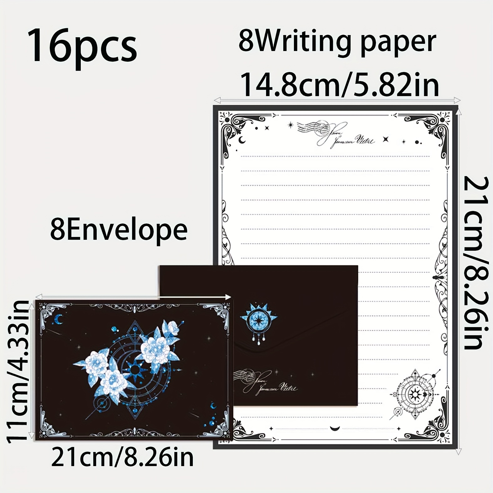 TEMU 16개 별이 빛나는 글자 종이 및 봉투 세트. 사랑 편지, 축복, 메시지를 위한 예술적인 손글씨 문구류가 특징입니다. 파티 초대장, 생일 축하, 축복 봉투에 적합합니다.