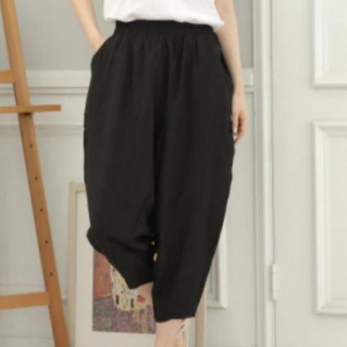 [에이치플러스몰]여성 봄 여름 항아리 8부 린넨 배기 팬츠 밴딩 바지