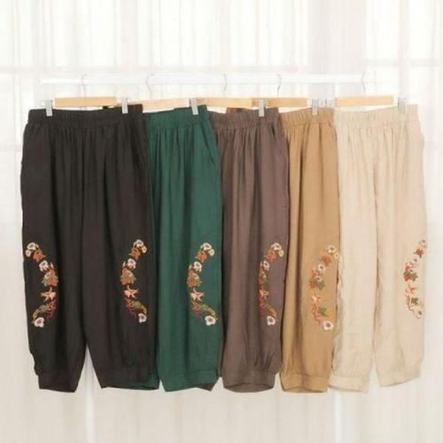 [에이치플러스몰]시보리 8부 캐주얼 린넨 꽃 필수템 바지 배기 팬츠 여