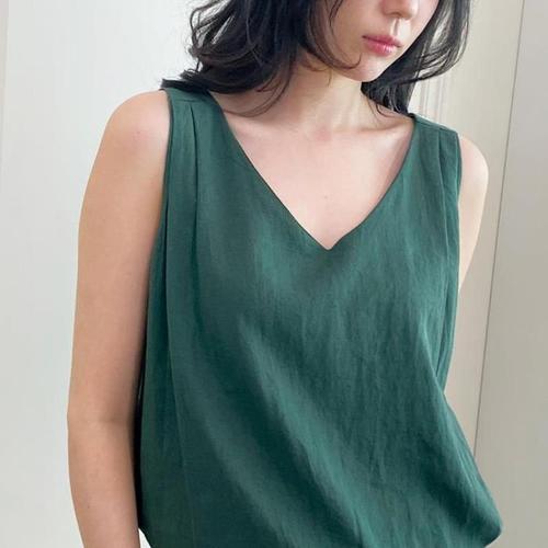 [신상오픈런]여성 빈티지 린넨 레이온 브이넥 나시 블라우스 (37710897)
