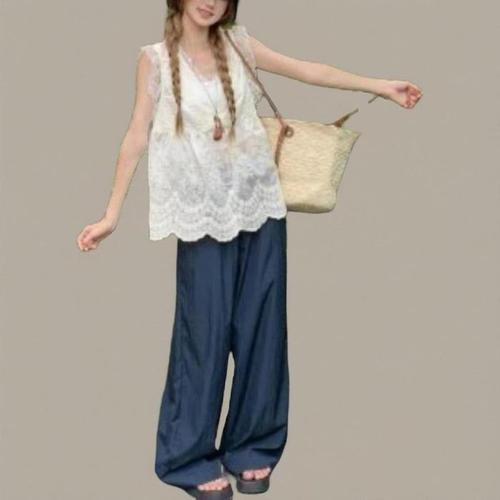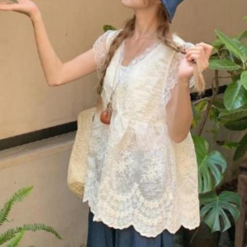 [신상오픈런]여성 레이스 브이넥 민소매 블라우스 레이어드 스타일 (41315495)