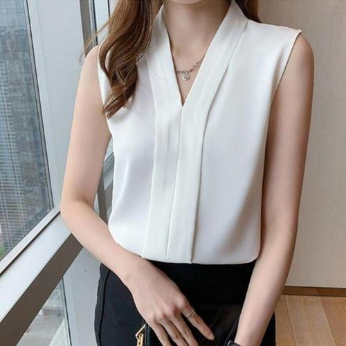 [신상오픈런]여성용 민소매 브이넥 여름 블라우스 A라인 무채색 디자인 (32776851)