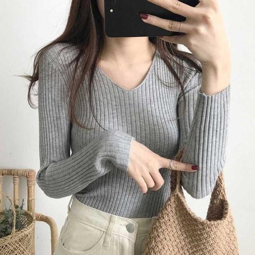 [에이치플러스몰]데일리 브이넥 골지니트 긴팔티 슬림핏 이너 신축성