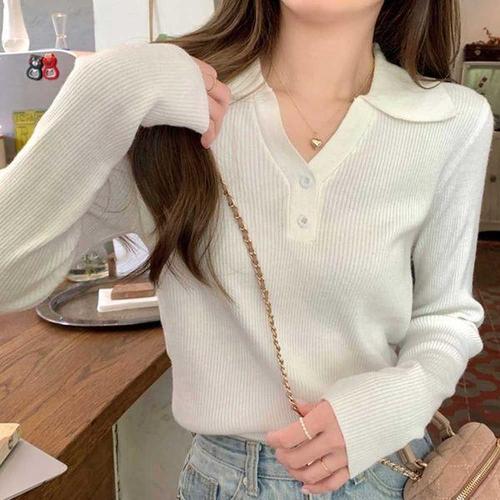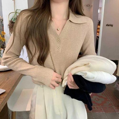 [에이치플러스몰]카라 단추 브이넥 골지니트 베이직 가을 출퇴근룩