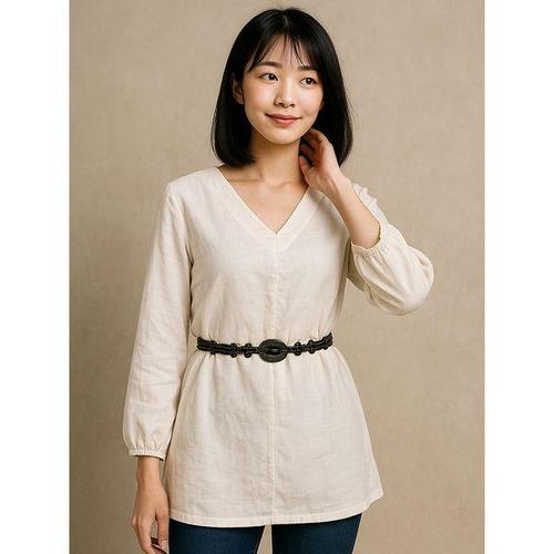 [샵앤]여성 노카라 V넥 무지 롱 블라우스 SML-WBL-4920-아이보리