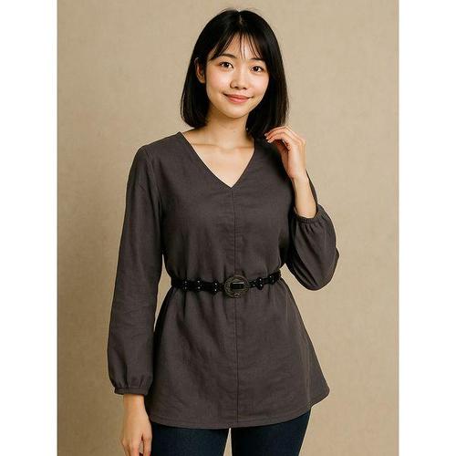 [샵앤]여성 노카라 V넥 무지 롱 블라우스 SML-WBL-4920-그레이