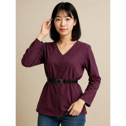 [샵앤]여성 노카라 V넥 무지 롱 블라우스 SML-WBL-4920-퍼플