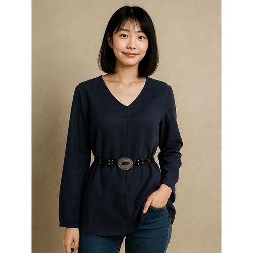 [샵앤]여성 노카라 V넥 무지 롱 블라우스 SML-WBL-4920-네이비