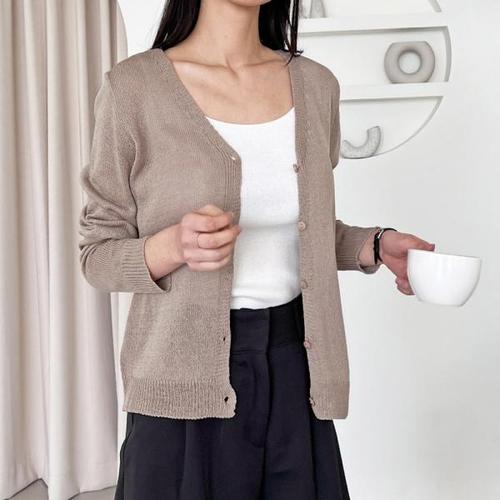 [리빌모아]여자 데일리 린넨 브이넥 무지 가디건 DJW-CA-S2LPPT1044-베이지