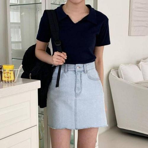 [에이치플러스몰]브이넥 여성티셔츠 슬림핏 스프티셔츠 반팔티 후