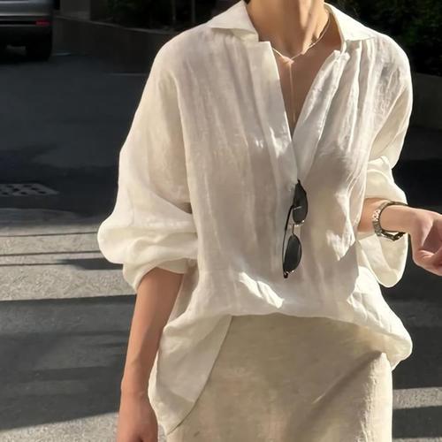 [디작소]심플 루즈핏 브이넥 반버튼 심플 얇은 셔츠 탑 (39783464)