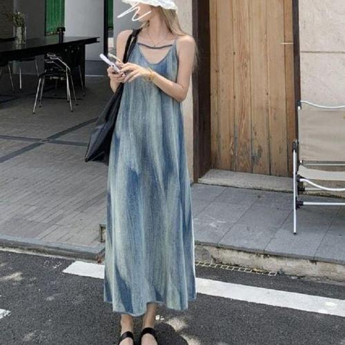 [모노무드]LMO 나시 투톤 데일리 스웨터 원피스룩 브이라인 스트랩탑패턴 내추럴룩 H라인 롱드레스업