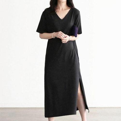 [모노무드]모노무드 여성 브이라인 모달 반팔 주머니 슬릿 롱 원피스 빅사