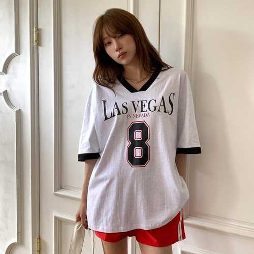 옷자락 / 여성 데일리 배색 브이넥 레터링 루즈핏 반팔티