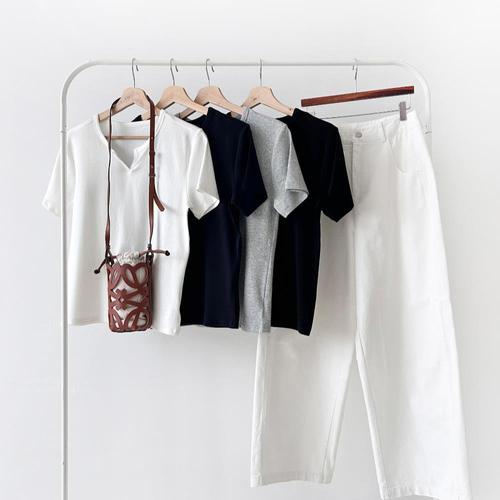 [탱글촉촉/데일리템] 쫀쫀 유브이넥 반팔티