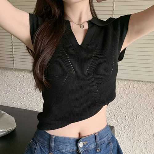 슈팅스타 / 타이트 슬림 크롭 카라넥 브이넥 심플 베이직 반팔티