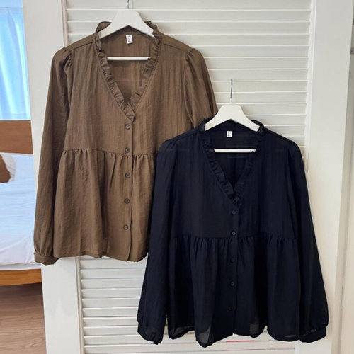 나야홍 / 빅사이즈블라우스 V669L511 프릴카라버튼블라우스 YP