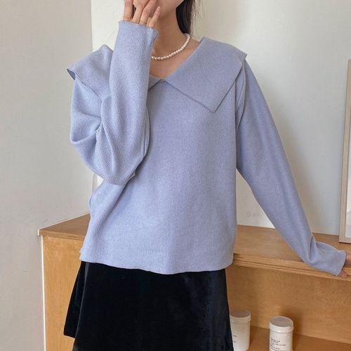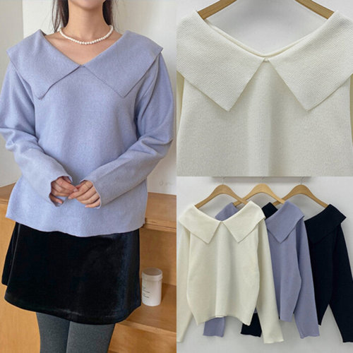 [다잇템] 여자 스웨터 데일리 브이 슬릿 카라넥 티셔츠_23936885_588872