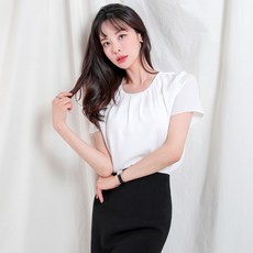 빅사이즈 정장 블라우스 면접 흰색 고급 라운드 셔츠 [플레어 셔링 일자]