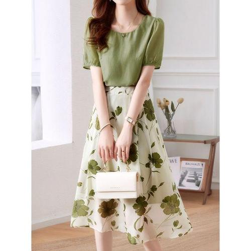 [오노마] ONM 플레어 스커트 블라우스 세트 화사한 패턴 프릴 코디 (S8117948)
