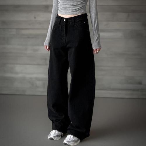 [신상오픈런]여자 커브드 루즈 와이드핏 힙한 데일리룩 블랙 면바지 (41442674)