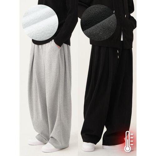 [진마니아][진마니아] 윈터 플리스 기모 4핀턱 루즈 와이드 트레이닝 남여공용 (그레이,블랙)