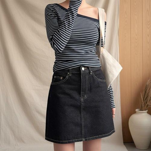 [옷자락] 여성 블랙 A라인 스티치 미니스커트 논스판 면청치마