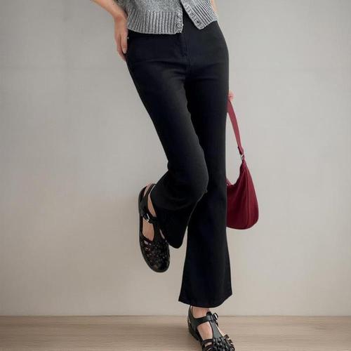 [신상오픈런]여성 스판 부츠컷 블랙 진 핏 드레스 팬츠 (32638127)