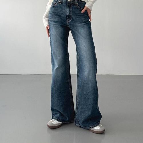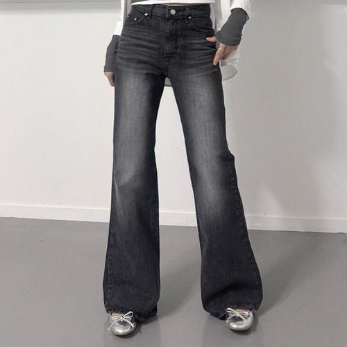 [신상오픈런]부츠컷 데님팬츠 논스판 워싱 여성 블랙진 나팔바지 (31645594)