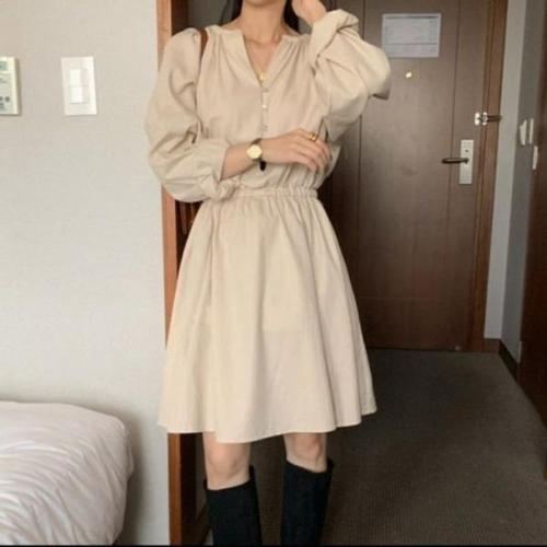 [엄지척]브이트임 블랙 베이지 원피스 밴딩넥_19870481_667501