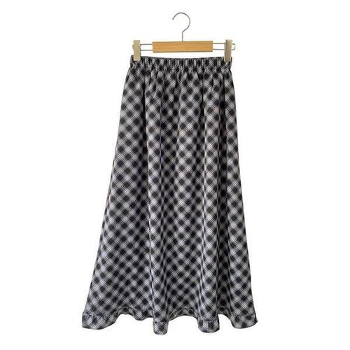 [샵앤]국산 여성 프릴 밴딩 체크 롱스커트 STJ-WSK-4872-블랙