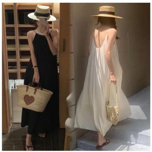 [에이치플러스몰]여자 여름 데이트 룩 나시 블랙 롱 원피스 드레스