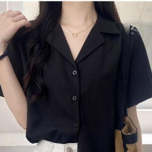 여자 여름 반팔 블라우스 여성 브이넥 브라우스 블랙