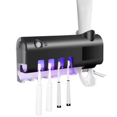 Garrl 무선UV등 자동감지 빛충전 칫솔치약걸이 다용도 칫솔 케이스 치약 짜기 칫솔 면도기 수납기, 블랙