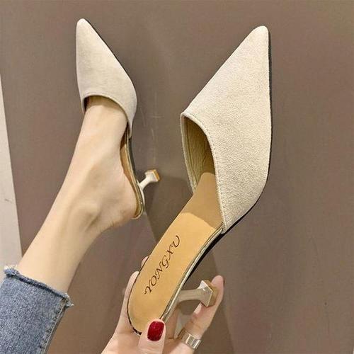 [셀러허브_여성트랜드패션]여성 뮬 스웨이드 미들힐 스틸레토 블로퍼 펌프스힐