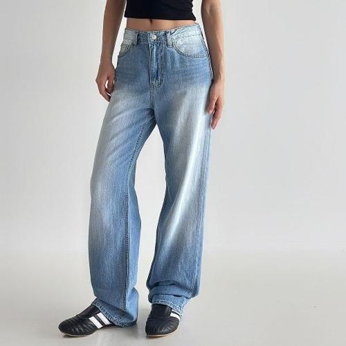 [다잇템][다잇템] 여자 라이트블루 SS 워싱진 세미와이드 빅사이즈 H라인 청바지_20890602_588872