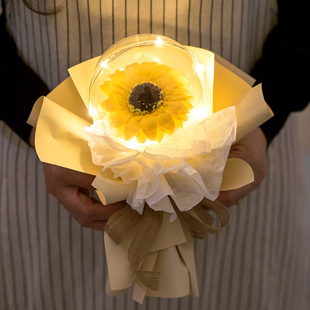 해바라기 조화 꽃다발 LED 한송이벌룬비누 26cm 인테리어 꽃 선물